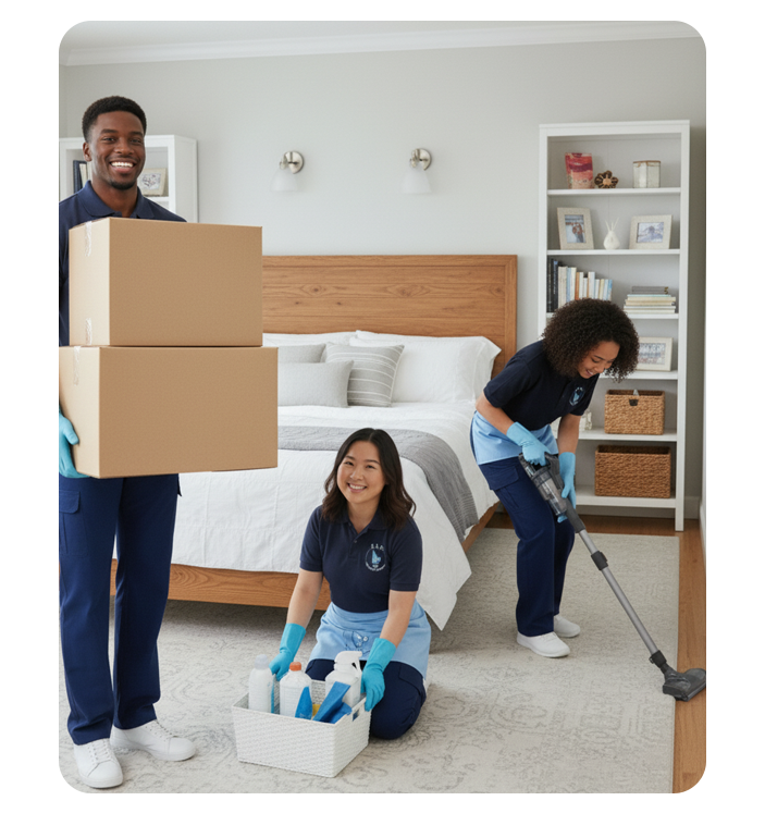 Thorough cleaning and sanitizing of all surfaces, floors, furniture, and décor. Includes dusting ceiling fans, light fixtures, mirrors, and blinds to keep every room fresh, organized, and comfortable.